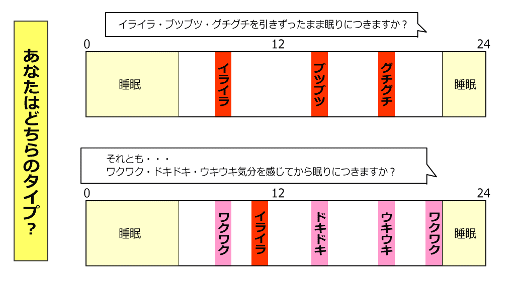 下段のタイプの人は、次から次へと「ワクワク・ドキドキ・ウキウキ」の気分・感情を味わえるような出来事や出会いを手にすることができると思います。