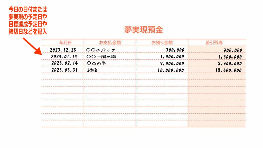 1つ目は残高を積み上げていきます。(欲しいもの、願いごと、夢がある場合)