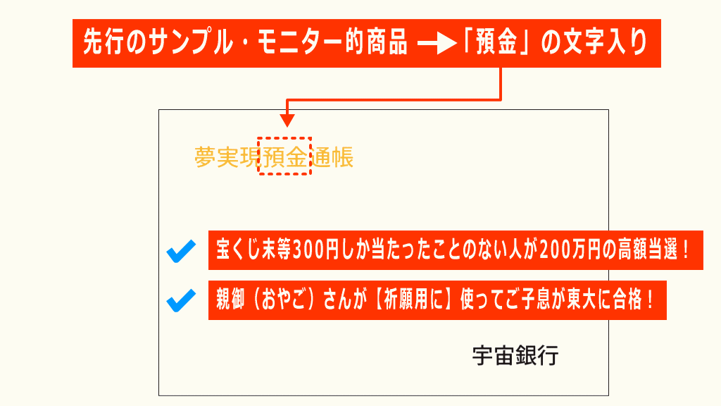 実は、この夢実現通帳のモニター的な商品として夢実現預金通帳というものも誕生させました。(「預金」という言葉・文字が入っています)